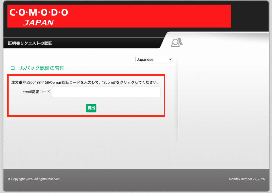 【email認証コード】を入力していただき、【提出】をクリックしてください。